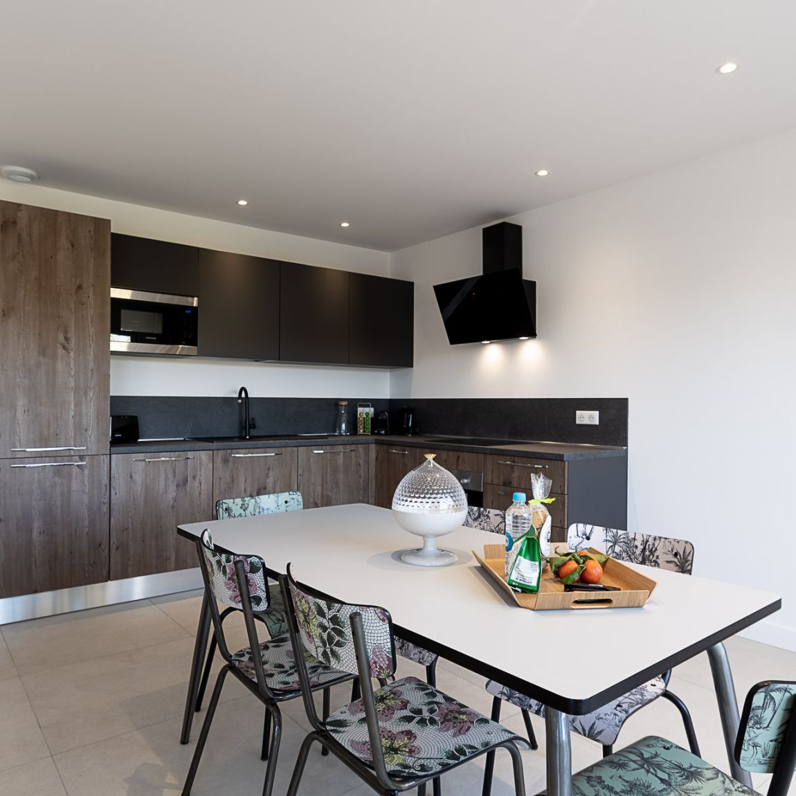 Chaque appartement est constitué d’un salon, d’une cuisine d’un grand confort entièrement équipée (voir liste ci-dessous « équipements présents »), d’une salle de bain avec douche italienne et WC, d’un WC supplémentaire séparé, d’une terrasse privative avec barbecue individuel.